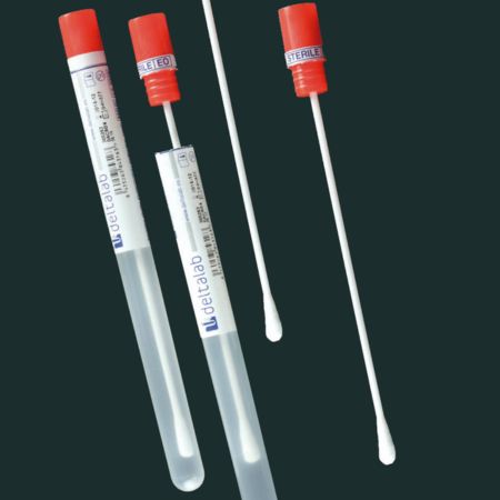 Sterile transport swab supplied in individual labelled polypropylene tubes complete with tamper-evident label. Each label is clearly printed with lot number and expiry date.