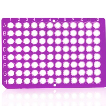 96 well non-skirted universal plates with standard profile wells, designed for use on all major thermal cyclers. Rigid frame eliminates warping and distortion during PCR.