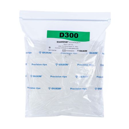 PIPETMAN® DIAMOND Tips are designed to fit your PIPETMAN perfectly. They deliver accurate and precise pipetting when used in conjunction with Gilson pipettes. ECOPACK™ is an economical way to order tips. Each ECOPACK contains 10,000 fully-autoclavable tips (10 bags of 1000 tips). The bags are sealed with a tamper-proof, rapid-sealing strip for easy access and to prevent contamination and loss of tips. Color-coding on the label enables easy identification and compliance with Good Laboratory Practice (GLP).
