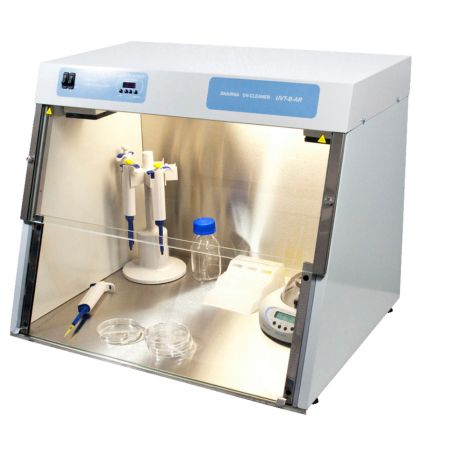 The built-in UV cleaner-recirculator both increases the maximum density of UV light and generates 25 m³/h air flow exchange - prevents unwanted contamination and protects the user from direct UV light during manipulation. The UV cleaner-recirculator consists of UV lamp, dust filters and a fan. The recirculation effect increases the maximum density of the UV light making it sufficiently effective for DNA / RNA inactivation. The recirculator processes 360 UV-cabinet volumes per hour, creating permanently aseptic conditions within the cabinet.
