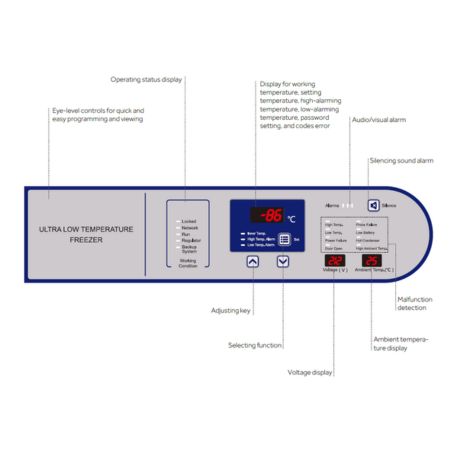 - Microprocessor-controlled system designed for controllable range of -40°C to -86°C for cabinet space with 1°C increment