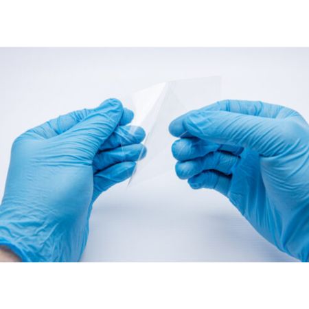 - This transparent polyester-based film has a low strength adhesive