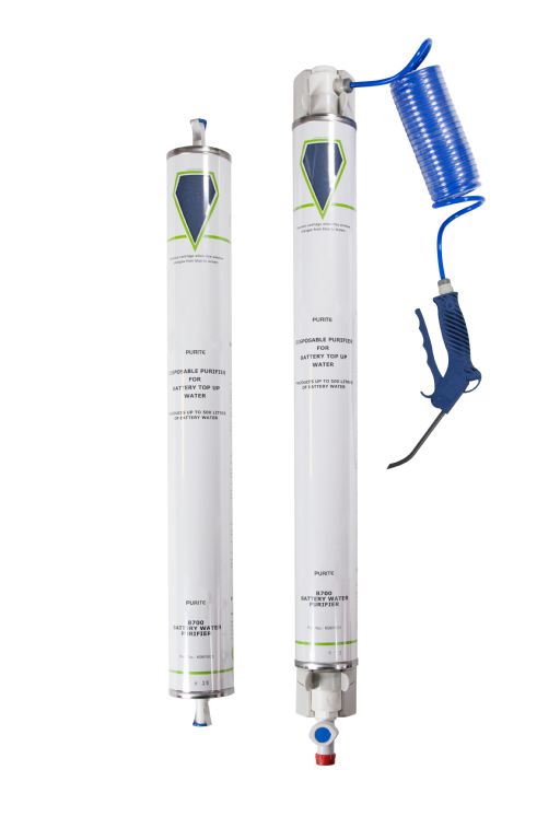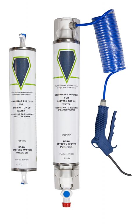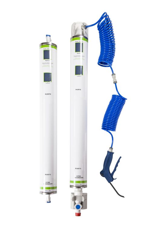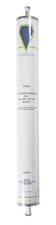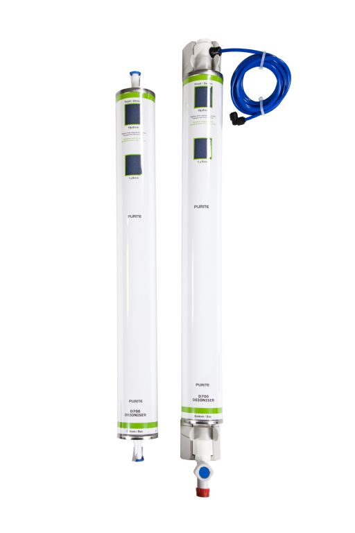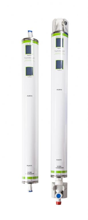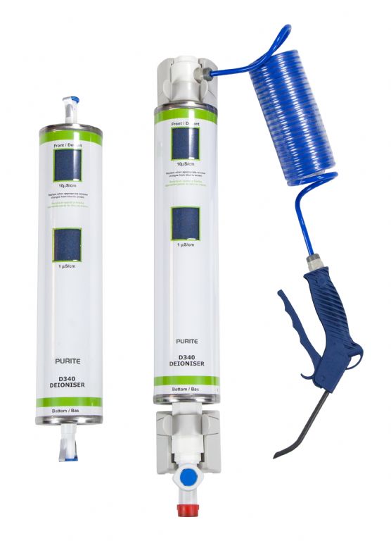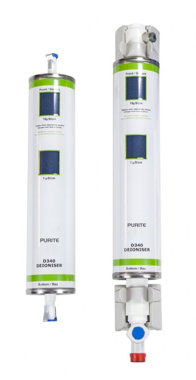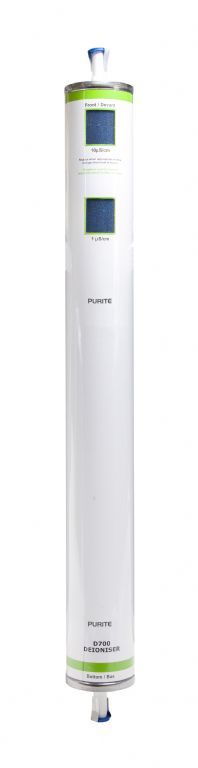 The Purite Labwater uses a special resin which absorbs ionic contaminants. As the resin becomes saturated its colour changes from blue to brown to indicate when a replacement is required.
